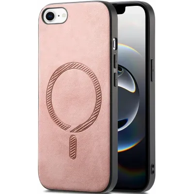 • Phonesta Retro Vegan Leather MagSafe Zadní kryt pouzdro pro Apple iPhone 17e/16e - Růžové